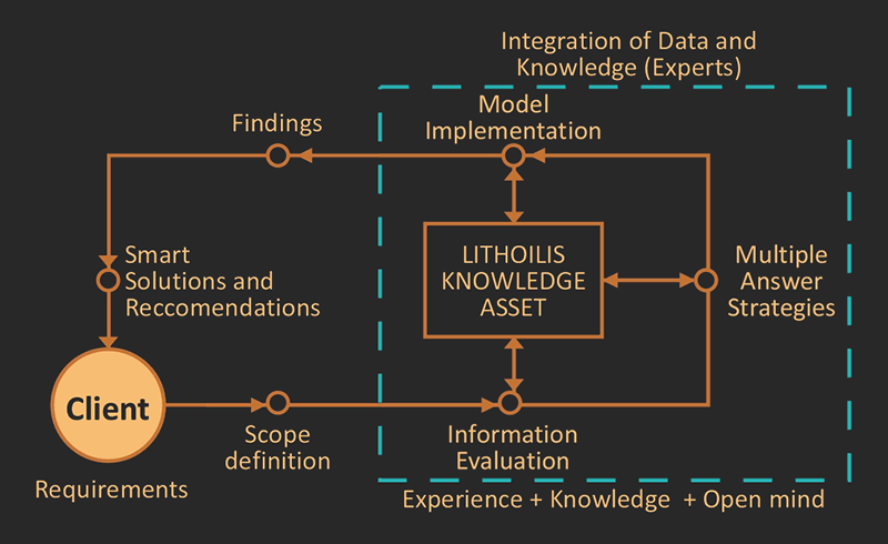 LITHoil Ltda has implemented procedures in their work flows, based on industry standards, including our methodology for integrating multiple perspectives which allow us to adjust to the conditions of information and data of each individual client. In general terms we are able to integrate products from areas as described below.